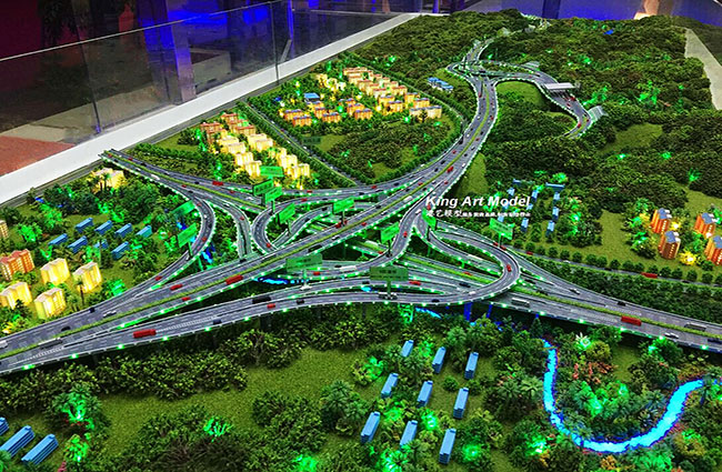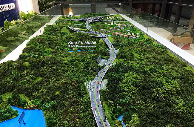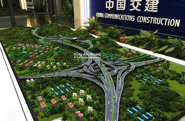 此次中交三航承接了深圳外環高速公路坪地九標段項目工程施工,項目計劃三年打造完成驗收正式交付使用。為了更好的引導工程施工進度及難度,中交三航委托深圳市港藝模型藝術設計有限公司打造坪地九標段沙盤模型,根據提供的圖紙,沙盤模型精細的體現了:立交互通的每一個細節,行車線、路面、路肩、防撞護欄、橋墩、涵洞、互通國道及市政道路的連接、收費站等高速配套。