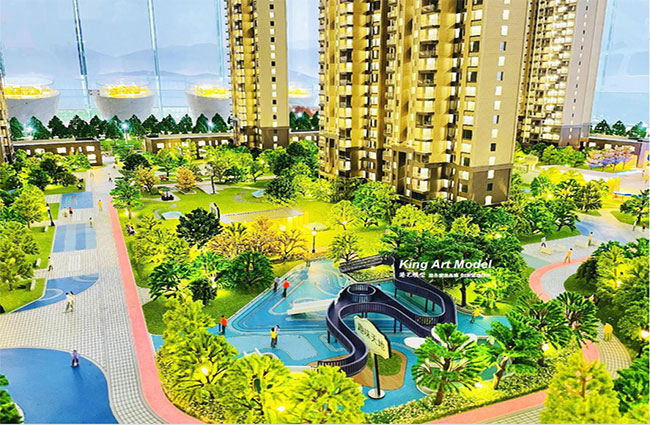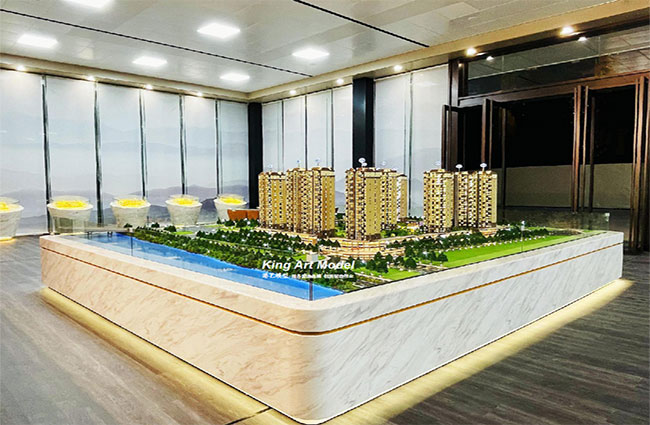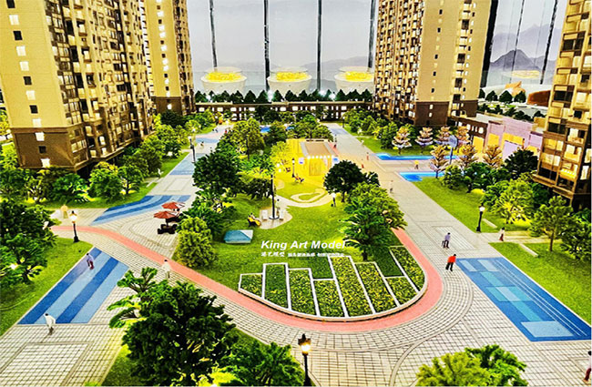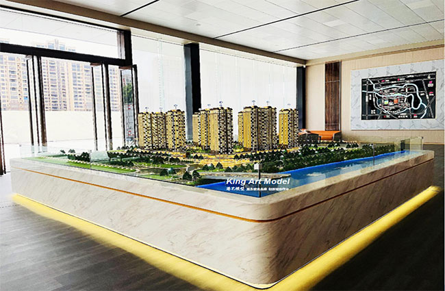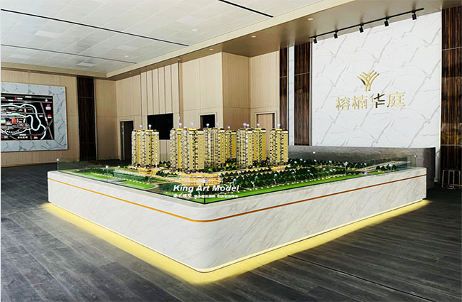 根據模型展示空間,結合本項目的建設特點,港藝將模型比例設計為1:90,以歐式風格元素意境作為創造靈感,將項目本身的設計理念完美還原沙盤模型設計中,所有工藝及用材用料均以體現高端、品質為核心來創作。